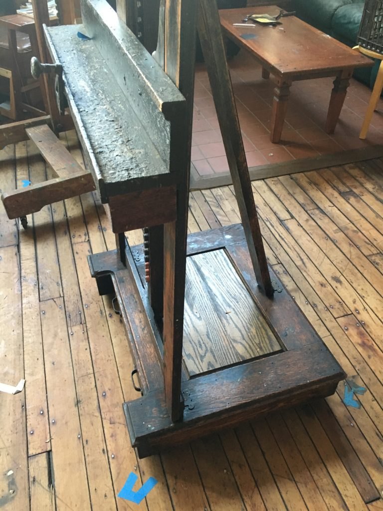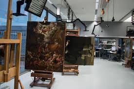 Here’s a gallery below, of not only standalone Easels, but EASELS IN ACTION via Conservation or Restoration. These experts are so good at oil painting they are trusted by museums to maintain, repair & restore works from antiquity. A bit different than the standard youtube back yard shed folks.