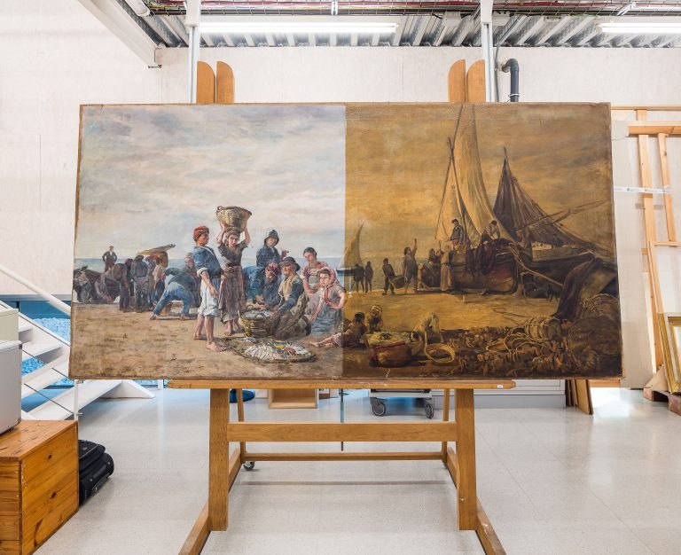 A First rate Man of War driven onto a reef of rocks, floundering in a gale by George Philip Reinagle